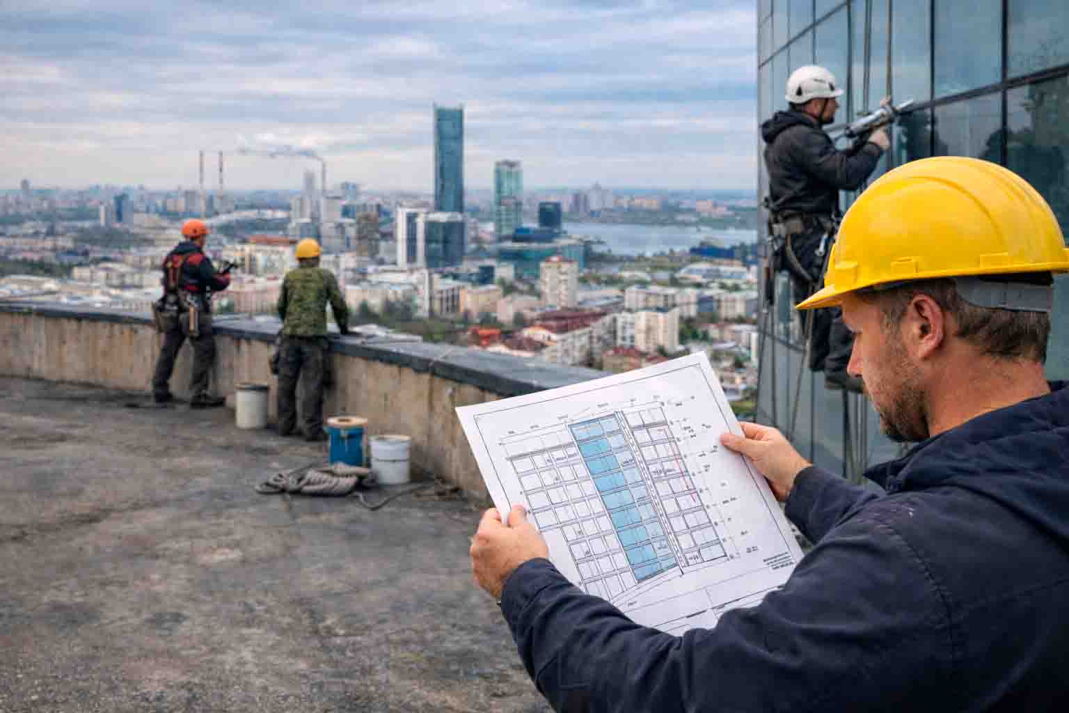 Если объект выше 2–3 этажей, необходимы промышленные альпинисты с действующими удостоверениями и страховкой. - Понимание конструкций здания