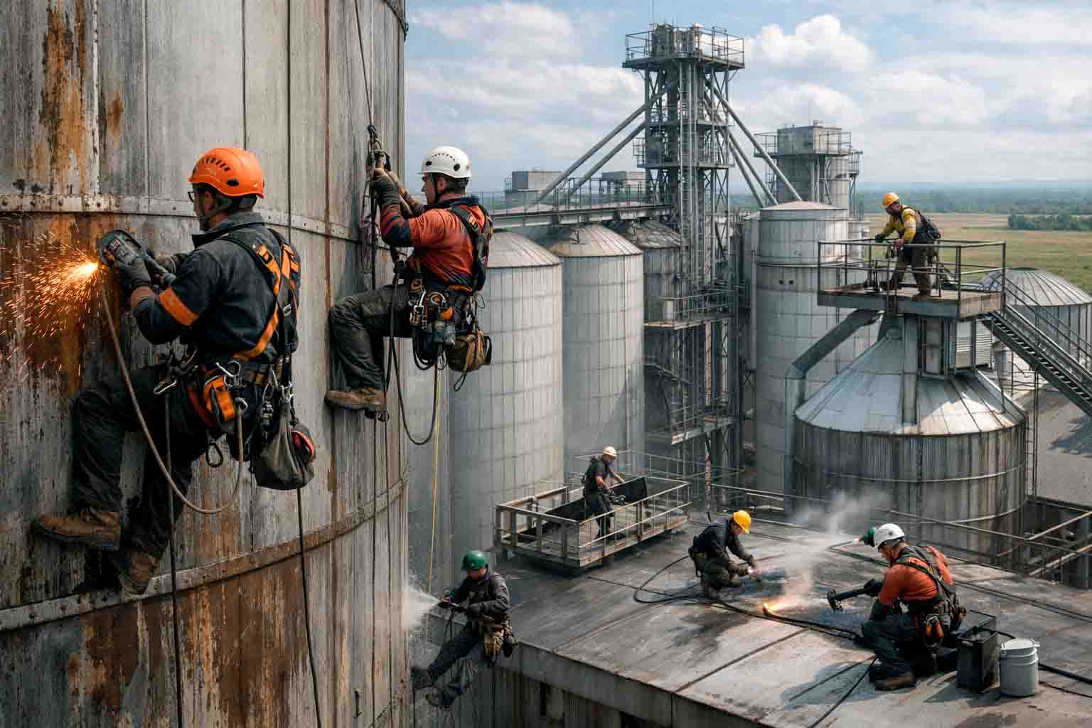Работы на элеваторе относятся к категории сложных высотных и строительно-монтажных процессов, где цена ошибки особенно высока. В отличие от стандартных промышленных объектов, элеваторы сочетают большую высоту, ограниченный доступ, агрессивные среды и непрерывную эксплуатацию. Поэтому перед заказом важно понимать, как проводится осмотр строительных конструкций зданий и сооружений, из чего складывается стоимость и какие риски необходимо учитывать.