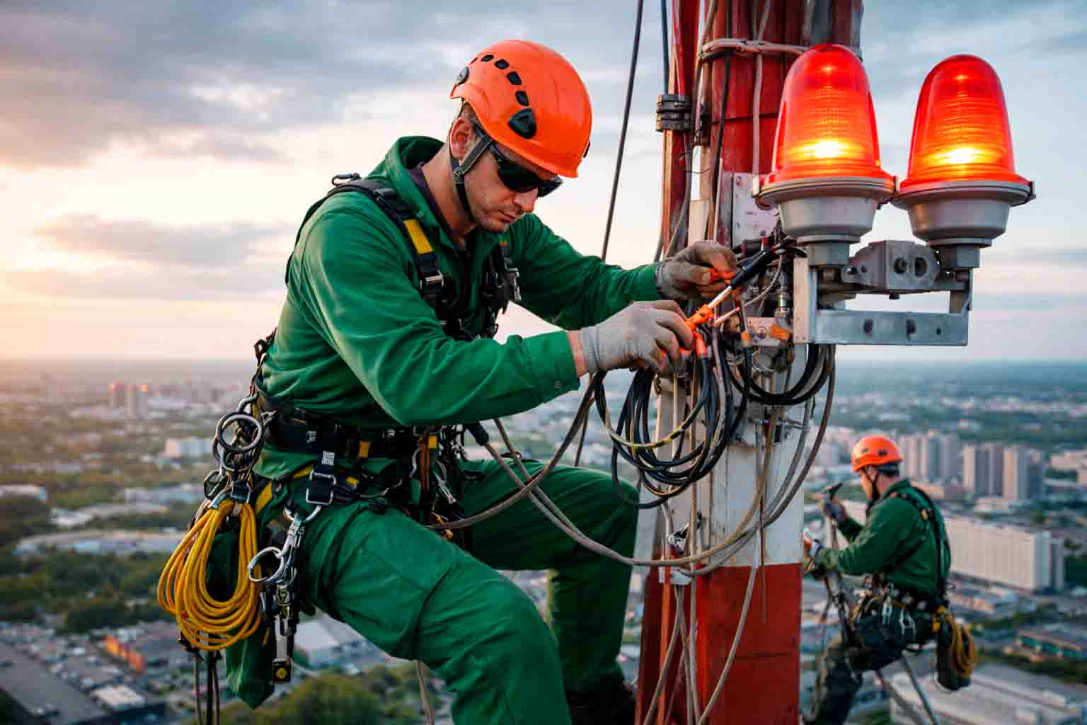 - замена и обслуживание ламп сигнального освещения на высотных конструкциях;
