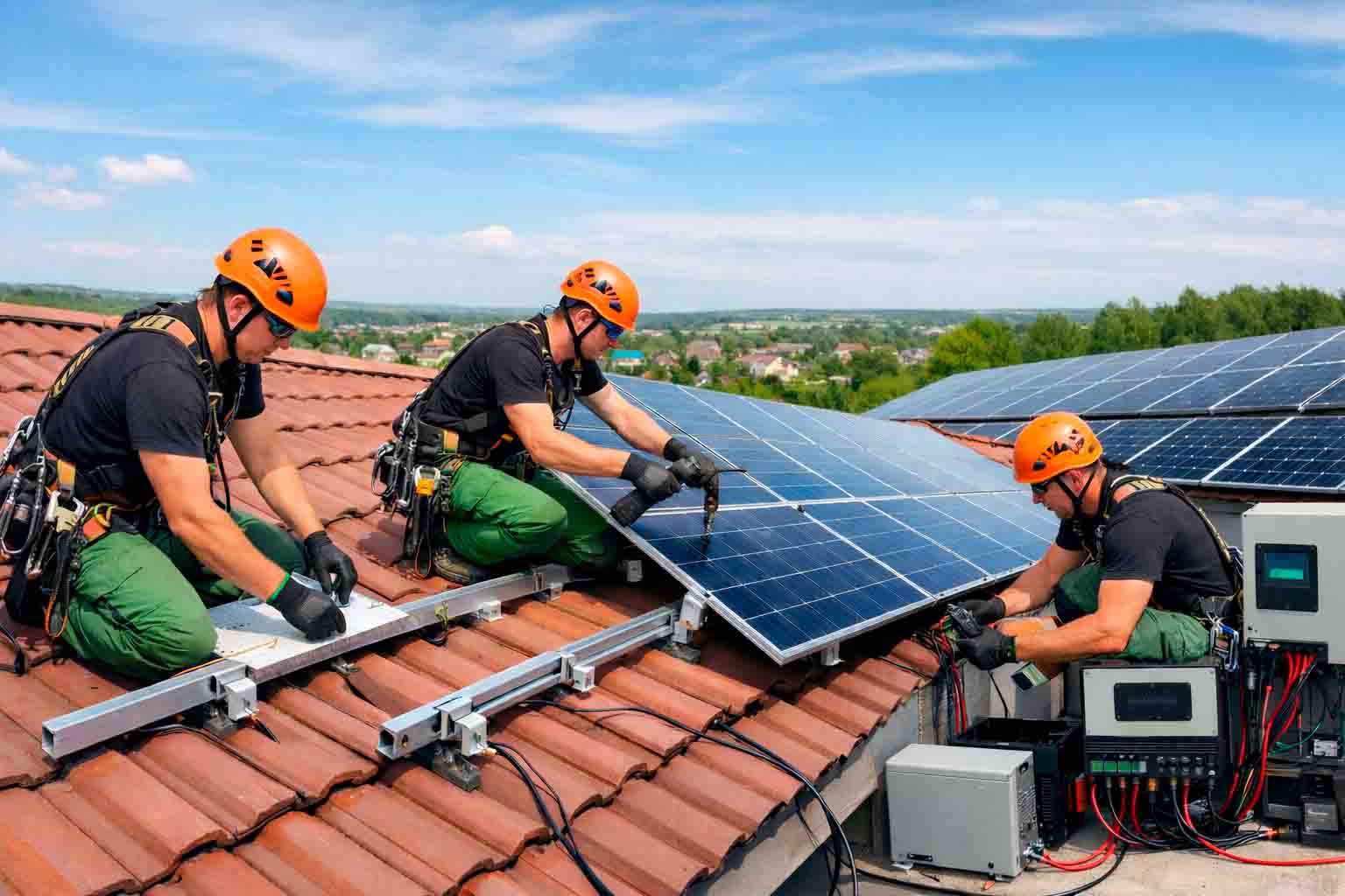 Мы обеспечиваем полный цикл работ: от обследования кровли и подбора оборудования до установки, подключения и тестирования системы. Монтаж солнечных панелей на крыше выполняется с соблюдением строительных и электротехнических норм, что напрямую влияет на работу солнечных панелей и срок их службы. Решения подходят как для частных объектов, так и для предприятий, где важны надёжность конструкции и стабильность генерации.